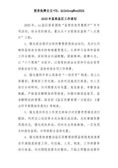 【七哥公文】2025年:2025年监狱监区工作谋划+更多免费公文+VX:QiGeGongWen2024+更多免费公文+VX:QiGeGongWen2024
