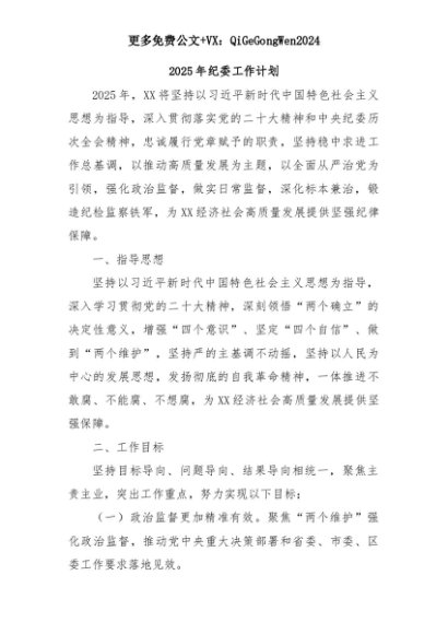 【七哥公文】2025年:2025年纪委工作计划+更多免费公文+VX:QiGeGongWen2024+更多免费公文+VX:QiGeGongWen2024