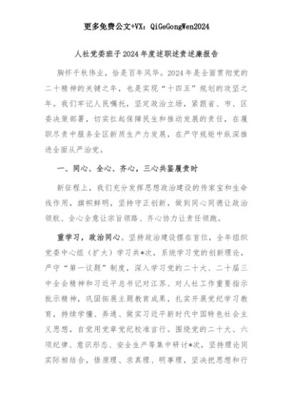【七哥公文】2025年:人社党委班子2024年度述职述责述廉报告+更多免费公文+VX:QiGeGongWen2024+更多免费公文+VX:QiGeGongWen2024