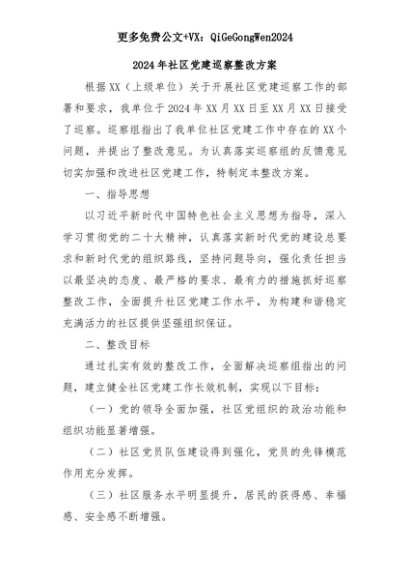 【七哥公文】2025年:2024年社区党建巡察整改方案+更多免费公文+VX:QiGeGongWen2024+更多免费公文+VX:QiGeGongWen2024