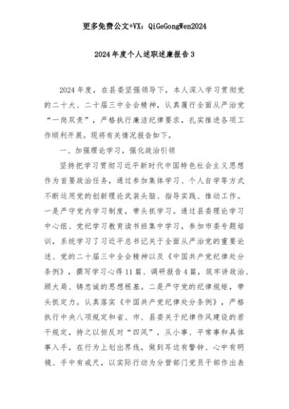 【七哥公文】2025年:2024年度个人述职述廉报告3+更多免费公文+VX:QiGeGongWen2024+更多免费公文+VX:QiGeGongWen2024
