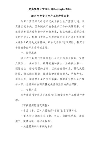 【七哥公文】2025年:2024年度安全生产工作考核方案+更多免费公文+VX:QiGeGongWen2024+更多免费公文+VX:QiGeGongWen2024