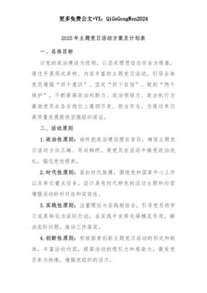 【七哥公文】2025年:2025年主题党日活动方案及计划表+更多免费公文+VX:QiGeGongWen2024+更多免费公文+VX:QiGeGongWen2024