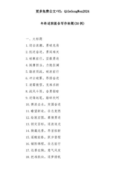 【七哥公文】2025年:(50例)年终述职报告写作标题+更多免费公文+VX:QiGeGongWen2024+更多免费公文+VX:QiGeGongWen2024