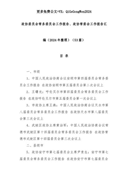 【七哥公文】2025年:(53篇)政协委员会常务委员会工作报告、政协常委会工作报告汇编(2024年整理)+更多免费公文+VX:QiGeGongWen2024+更多免费公文+VX:QiGeGongWen2024