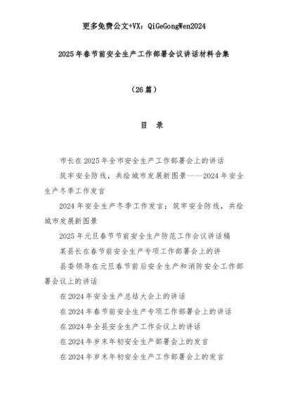 【七哥公文】2025年:(26篇)2025年春节前安全生产工作部署会议讲话材料合集+更多免费公文+VX:QiGeGongWen2024+更多免费公文+VX:QiGeGongWen2024