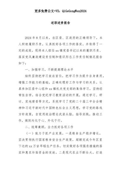 【七哥公文】2025年:述职述责报告+更多免费公文+VX:QiGeGongWen2024+更多免费公文+VX:QiGeGongWen2024