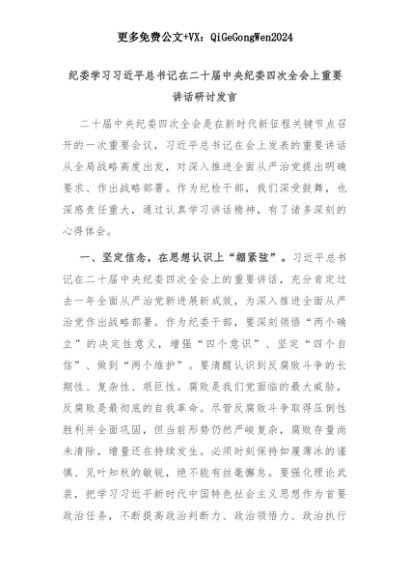 【七哥公文】2025年:纪委学习习近平总书记在二十届中央纪委四次全会上重要讲话研讨发言+更多免费公文+VX:QiGeGongWen2024+更多免费公文+VX:QiGeGongWen2024