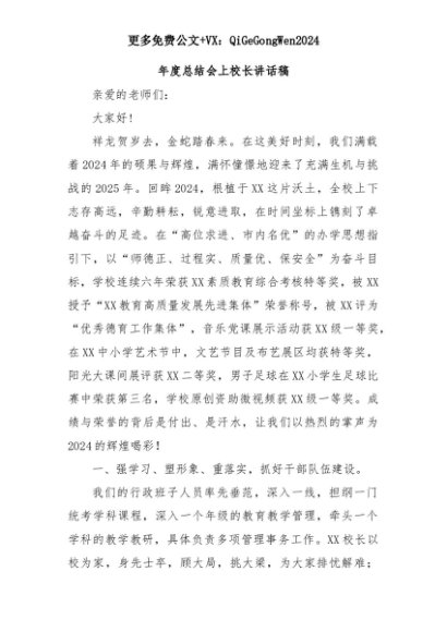 【七哥公文】2025年:年度总结会上校长讲话稿+更多免费公文+VX:QiGeGongWen2024+更多免费公文+VX:QiGeGongWen2024