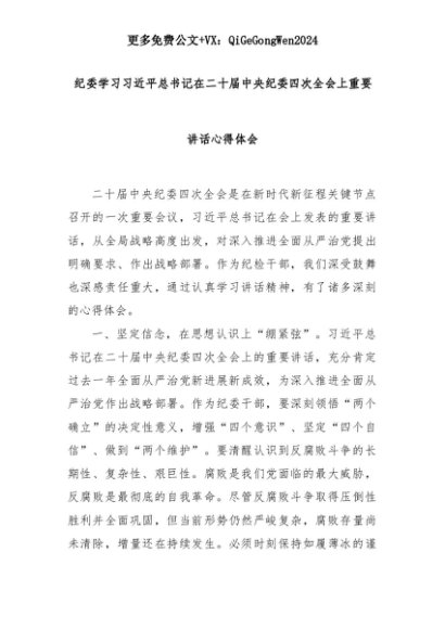 【七哥公文】2025年:纪委学习总书记在二十届中央纪委四次全会上重要讲话心得体会+更多免费公文+VX:QiGeGongWen2024+更多免费公文+VX:QiGeGongWen2024