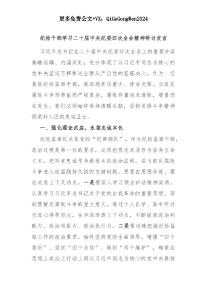 【七哥公文】2025年:纪检干部学习二十届中央纪委四次全会精神研讨发言+更多免费公文+VX:QiGeGongWen2024+更多免费公文+VX:QiGeGongWen2024
