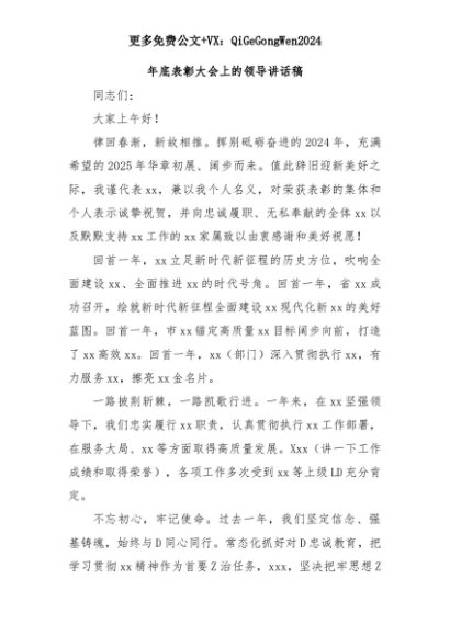 【七哥公文】2025年:年底表彰大会上的领导讲话稿+更多免费公文+VX:QiGeGongWen2024+更多免费公文+VX:QiGeGongWen2024