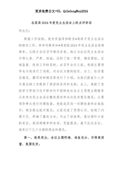 【七哥公文】2025年:在某局2024年度民主生活会上的点评讲话+更多免费公文+VX:QiGeGongWen2024+更多免费公文+VX:QiGeGongWen2024