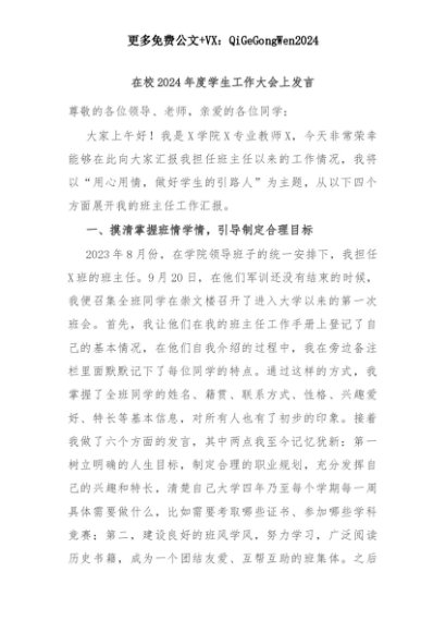【七哥公文】2025年:在校2024年度学生工作大会上发言+更多免费公文+VX:QiGeGongWen2024+更多免费公文+VX:QiGeGongWen2024