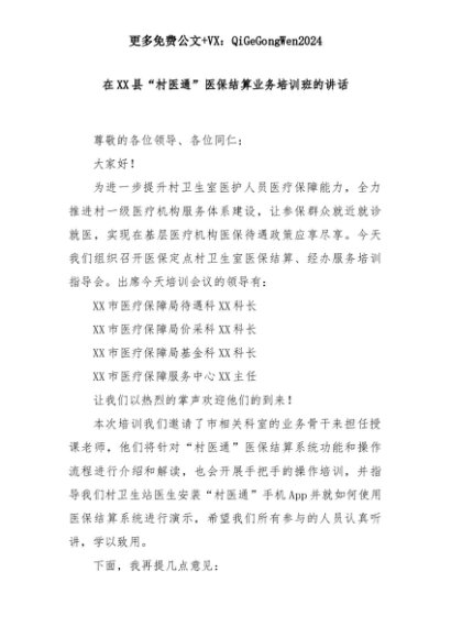 【七哥公文】2025年:在XX县“村医通”医保结算业务培训班的讲话+更多免费公文+VX:QiGeGongWen2024+更多免费公文+VX:QiGeGongWen2024