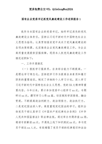 【七哥公文】2025年:国有企业党委书记抓党风廉政建设工作述职报告1+更多免费公文+VX:QiGeGongWen2024+更多免费公文+VX:QiGeGongWen2024