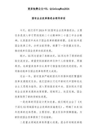 【七哥公文】2025年:国有企业改革推进会领导讲话+更多免费公文+VX:QiGeGongWen2024+更多免费公文+VX:QiGeGongWen2024