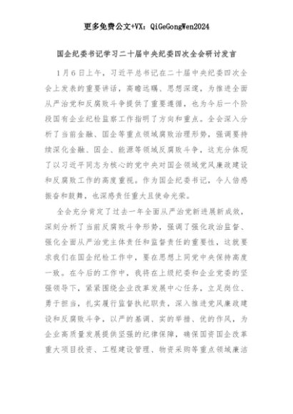 【七哥公文】2025年:国企纪委书记学习二十届中央纪委四次全会研讨发言+更多免费公文+VX:QiGeGongWen2024+更多免费公文+VX:QiGeGongWen2024