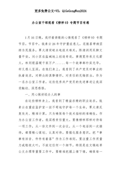 【七哥公文】2025年:办公室干部观看《榜样9》专题节目有感+更多免费公文+VX:QiGeGongWen2024+更多免费公文+VX:QiGeGongWen2024