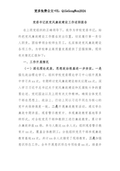 【七哥公文】2025年:党委书记抓党风廉政建设工作述职报告 (1)+更多免费公文+VX:QiGeGongWen2024+更多免费公文+VX:QiGeGongWen2024