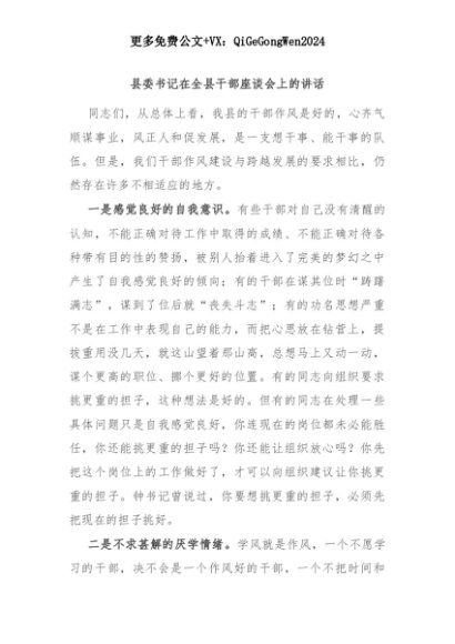 【七哥公文】2025年:县委书记在全县干部座谈会上的讲话+更多免费公文+VX:QiGeGongWen2024+更多免费公文+VX:QiGeGongWen2024