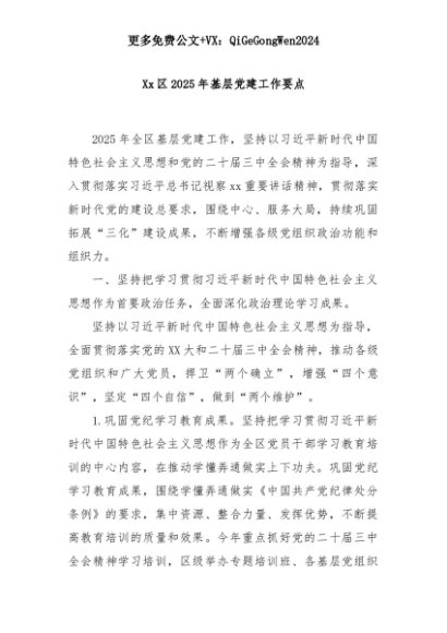 【七哥公文】2025年:Xx区2025年基层党建工作要点+更多免费公文+VX:QiGeGongWen2024+更多免费公文+VX:QiGeGongWen2024