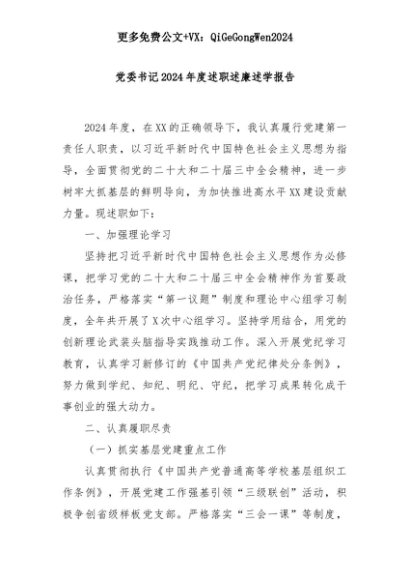 【七哥公文】2025年:党委书记2024年度述职述廉述学报告+更多免费公文+VX:QiGeGongWen2024+更多免费公文+VX:QiGeGongWen2024