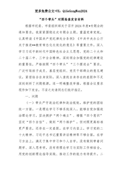 【七哥公文】2025年:“四个带头”对照检查发言材料+更多免费公文+VX:QiGeGongWen2024+更多免费公文+VX:QiGeGongWen2024