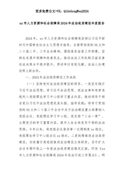 【七哥公文】2025年:xx市人力资源和社会保障局2024年法治政府建设年度报告+更多免费公文+VX:QiGeGongWen2024+更多免费公文+VX:QiGeGongWen2024