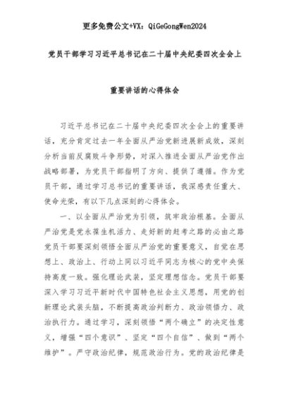 【七哥公文】2025年:党员干部学习习近平总书记在二十届中央纪委四次全会上重要讲话的心得体会+更多免费公文+VX:QiGeGongWen2024+更多免费公文+VX:QiGeGongWen2024