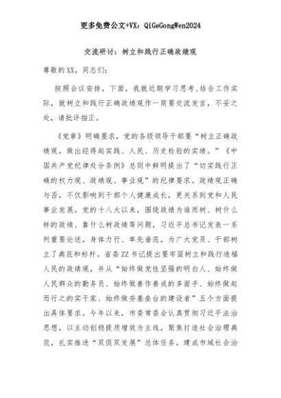 【七哥公文】2025年:交流研讨:树立和践行正确政绩观+更多免费公文+VX:QiGeGongWen2024+更多免费公文+VX:QiGeGongWen2024