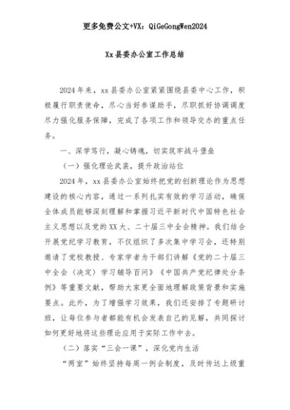 【七哥公文】2025年:Xx县委办公室工作总结+更多免费公文+VX:QiGeGongWen2024+更多免费公文+VX:QiGeGongWen2024