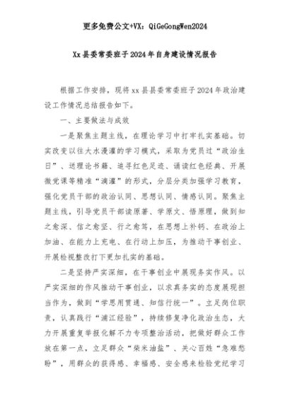 【七哥公文】2025年:Xx县委常委班子2024年自身建设情况报告+更多免费公文+VX:QiGeGongWen2024+更多免费公文+VX:QiGeGongWen2024