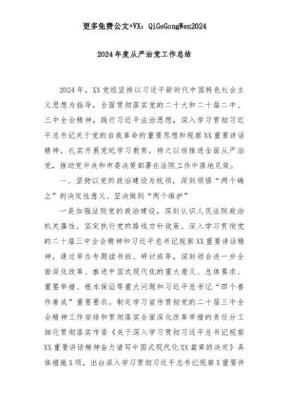 【七哥公文】2025年:2024年度从严治党工作总结+更多免费公文+VX:QiGeGongWen2024+更多免费公文+VX:QiGeGongWen2024