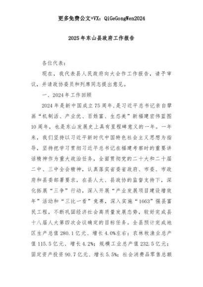 【七哥公文】2025年:2025年东山县政府工作报告+更多免费公文+VX:QiGeGongWen2024+更多免费公文+VX:QiGeGongWen2024