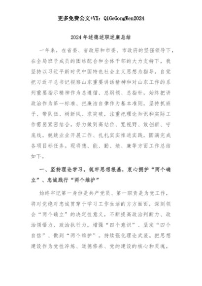 【七哥公文】2025年:2024年述德述职述廉总结+更多免费公文+VX:QiGeGongWen2024+更多免费公文+VX:QiGeGongWen2024