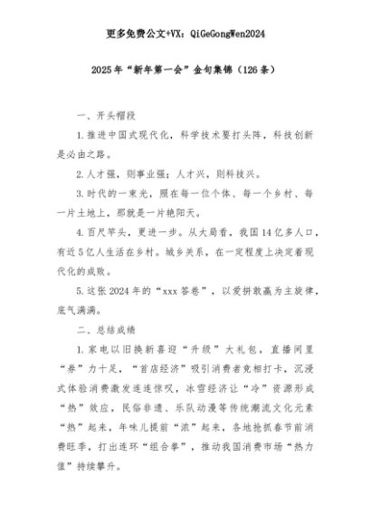 【七哥公文】2025年:2025年“新年第一会”金句集锦(126条)+更多免费公文+VX:QiGeGongWen2024+更多免费公文+VX:QiGeGongWen2024