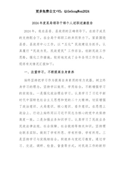 【七哥公文】2025年:2024年度某局领导干部个人述职述廉报告+更多免费公文+VX:QiGeGongWen2024+更多免费公文+VX:QiGeGongWen2024