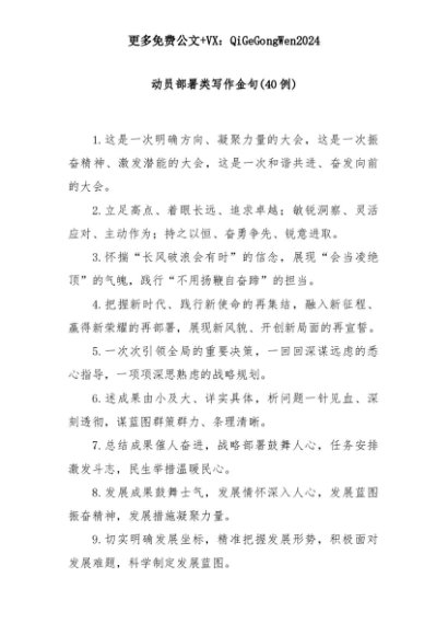 【七哥公文】2025年:(40例)动员部署类写作金句+更多免费公文+VX:QiGeGongWen2024+更多免费公文+VX:QiGeGongWen2024