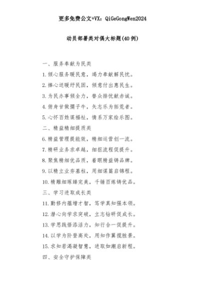 【七哥公文】2025年:(40例)动员部署类对偶大标题+更多免费公文+VX:QiGeGongWen2024+更多免费公文+VX:QiGeGongWen2024