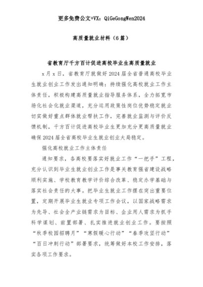 【七哥公文】2025年:(6篇)高质量就业材料+更多免费公文+VX:QiGeGongWen2024+更多免费公文+VX:QiGeGongWen2024