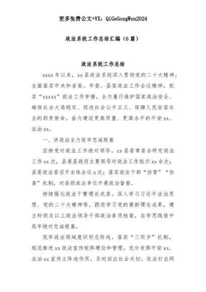 【七哥公文】2025年:(6篇)政法系统工作总结汇编+更多免费公文+VX:QiGeGongWen2024+更多免费公文+VX:QiGeGongWen2024