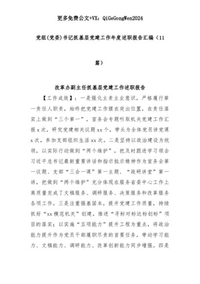 【七哥公文】2025年:(11篇)党组(党委)书记抓基层党建工作年度述职报告汇编+更多免费公文+VX:QiGeGongWen2024+更多免费公文+VX:QiGeGongWen2024