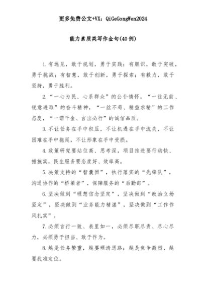【七哥公文】2025年:(40例)能力素质类写作金句+更多免费公文+VX:QiGeGongWen2024+更多免费公文+VX:QiGeGongWen2024
