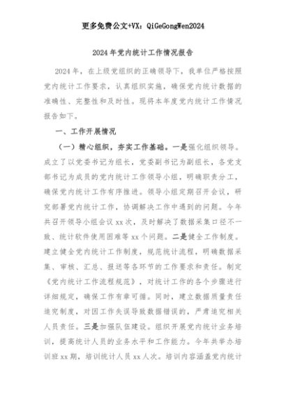 【七哥公文】2025年:2024年党内统计工作情况报告+更多免费公文+VX:QiGeGongWen2024+更多免费公文+VX:QiGeGongWen2024