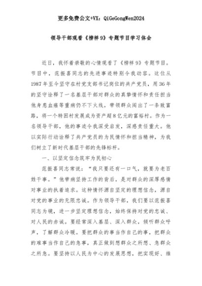 【七哥公文】2025年:领导干部观看《榜样9》专题节目学习体会+更多免费公文+VX:QiGeGongWen2024+更多免费公文+VX:QiGeGongWen2024