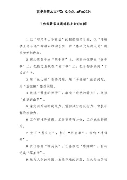 【七哥公文】2025年:(50例)工作部署落实类排比金句+更多免费公文+VX:QiGeGongWen2024+更多免费公文+VX:QiGeGongWen2024