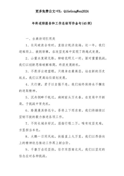 【七哥公文】2025年:(45例)年终述职报告和工作总结写作金句+更多免费公文+VX:QiGeGongWen2024+更多免费公文+VX:QiGeGongWen2024