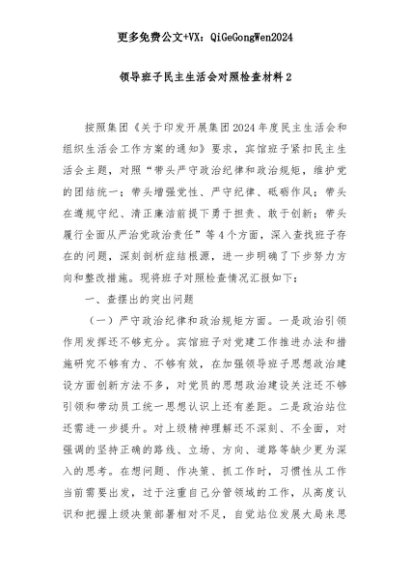 【七哥公文】2025年:领导班子民主生活会对照检查材料2+更多免费公文+VX:QiGeGongWen2024+更多免费公文+VX:QiGeGongWen2024
