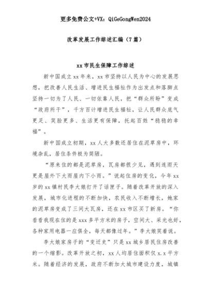 【七哥公文】2025年:(7篇)改革发展工作综述汇编+更多免费公文+VX:QiGeGongWen2024+更多免费公文+VX:QiGeGongWen2024
